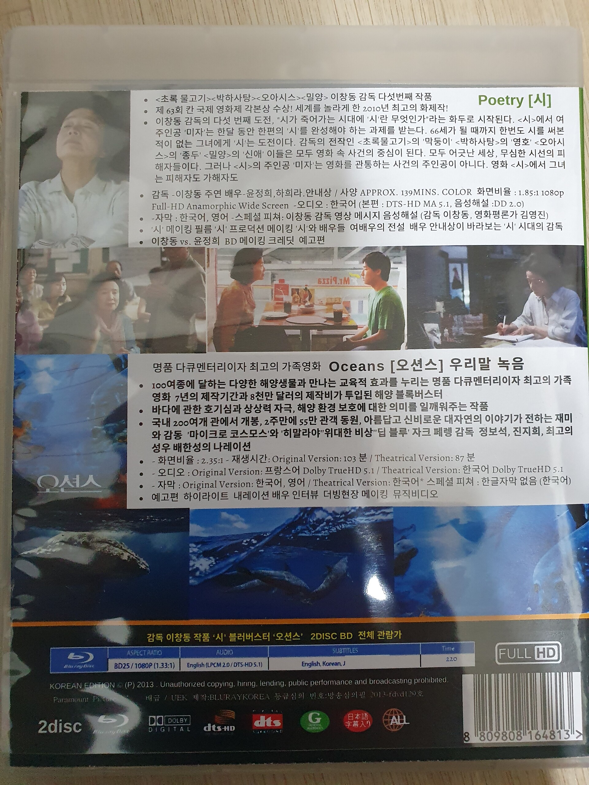 시는 읽어들이기는 하는데 재생은 안되고...저 다큐 OCEANS는 아예 읽어 들이지도 못하네요~둘다 꽝이 걸렸어요...교환 받아도 똑같겠죠?