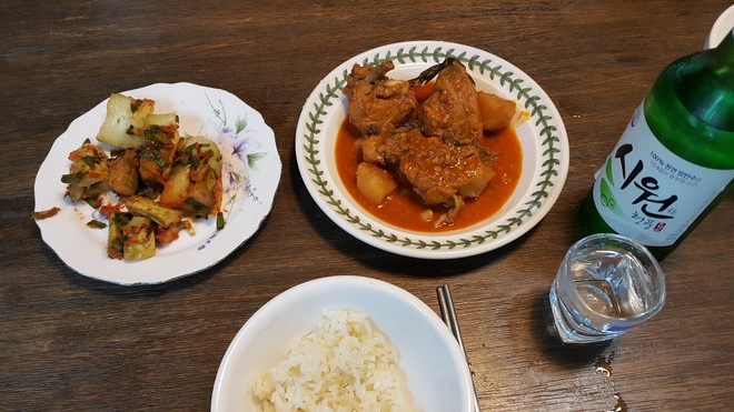 닭도리탕에 한잔중입니다