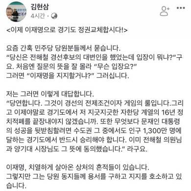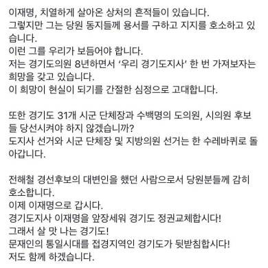 저는 지선끝나고 권리당원 될겁니다. 그동안 당원이 외부의 적을 공격하는건 제 양심이 허락하지 않아 안했는데 내부의 문제는 이제 내부에서 풀어야죠.