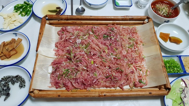 민물회는 자연산은 절댜 드시면안됨니다 식당에서파는 향어나 잉어회는 양식으로 디스토마걱정안해도 됩니다 민뮬회는 초장맛이죠^^