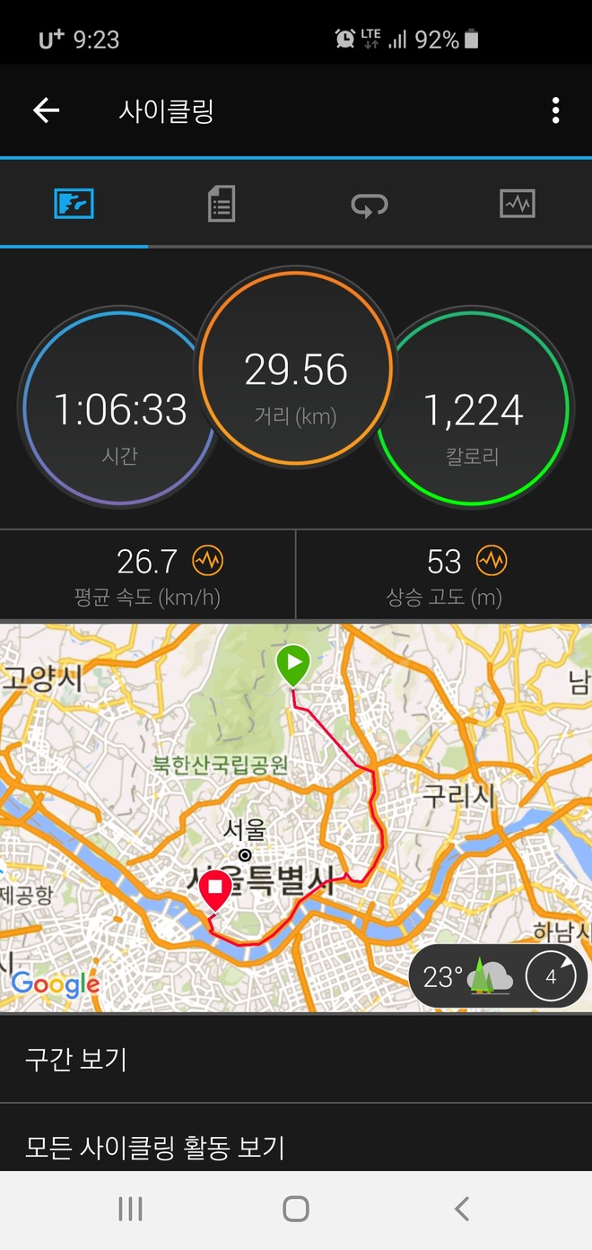 집잎부터 회사까지 거의 등바람이였습니다 중간 중간 맞바람이긴했는데 이런적은 별로 없었던거 같아요 뒤에서 누가 막 밀어주는데 출근길 기분 좋았습니다 덕분에 평속 기록을