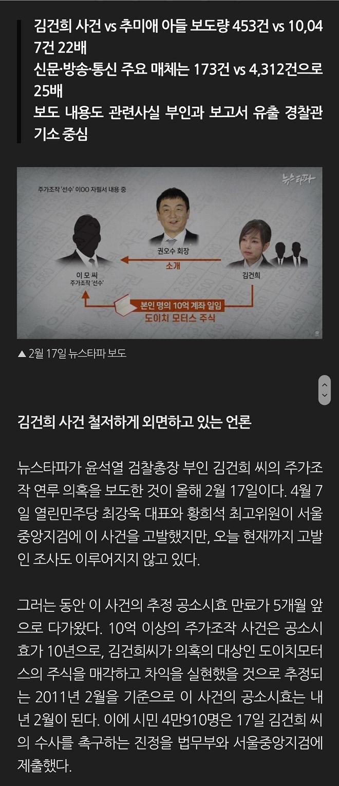 김건희 사건 vs 추미애 아들 보도량 453건 vs 10,047건 22배. 추악한 한국 언론의 현실입니다.