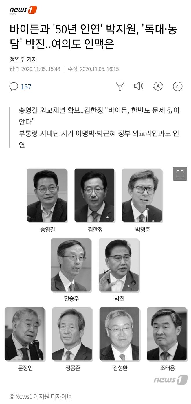 또 문정인 대통령 통일외교안보특보와 김대중 정부에서 대통령비서실 제1부속실장을 역임한 김한정 민주당 의원도 바이든 후보와 교류를 가져왔다.