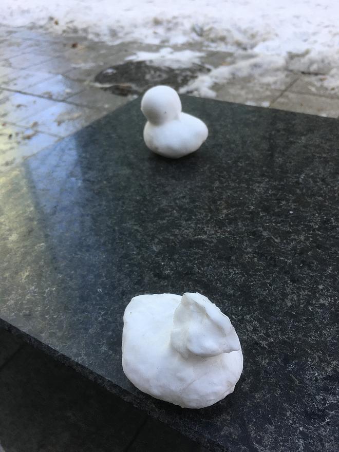 오리 틀을 좀 큰 사이즈로 만들어팔면 제설작업에도 쓸모가 있겠네요 눈 치워놓은게 귀엽게도 보일 테고,,,