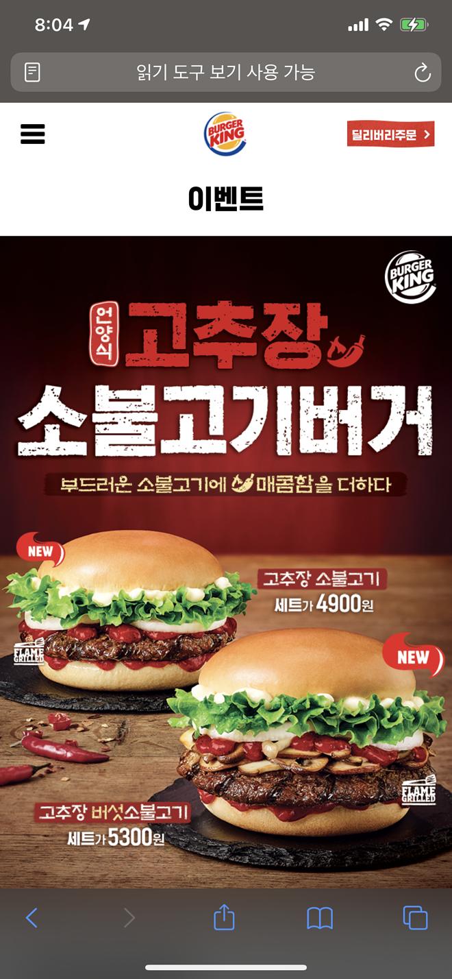 아니요...우리나라 버거킹에서도 고추장 불고기 버거 출시했어요. ㄷㄷㄷ