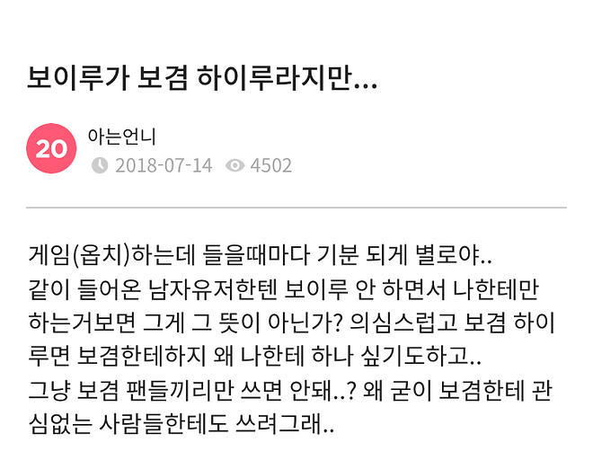 참나, 보이루는 '보겸 + 하이루'라는 걸 진즉에 밝혔는데, 래디컬 페미 성향 커뮤니티에서 여혐용어라고 왜곡해서 퍼뜨린 걸 그대로 인용하고 있네요. 심지어 이 논문을 쓴 윤지선 씨는 윤김지영의 친동생이라고 함... 심지어 윤지선 쪽에서는 이 얘기가 알려지자 오히려 보겸에게 엄정대응할거라며 적반하장으로 나오고 있더군요.