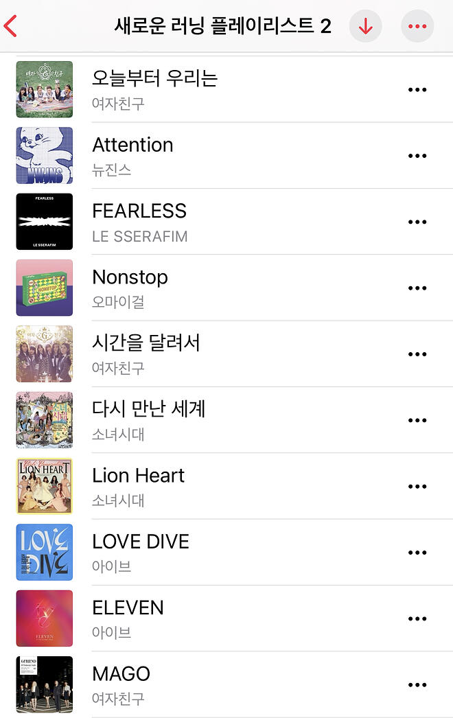 플레이리스트가 30개는 됩니다. 러닝할 땐 무조건 아이돌 음악요.