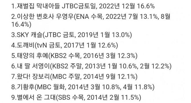 재벌집이 우영우까지 밀어냈습니다 대단하네요