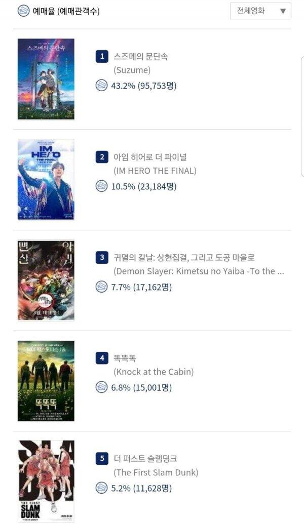 이런 논리면 영화 예매율 탑5에 일본 애니 3편이 있는건 어떻게 봐야할까요?