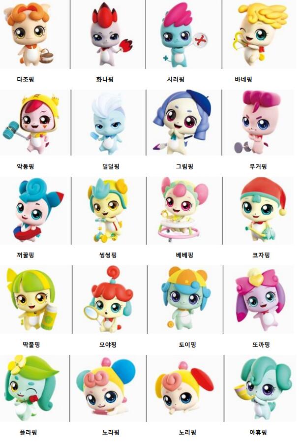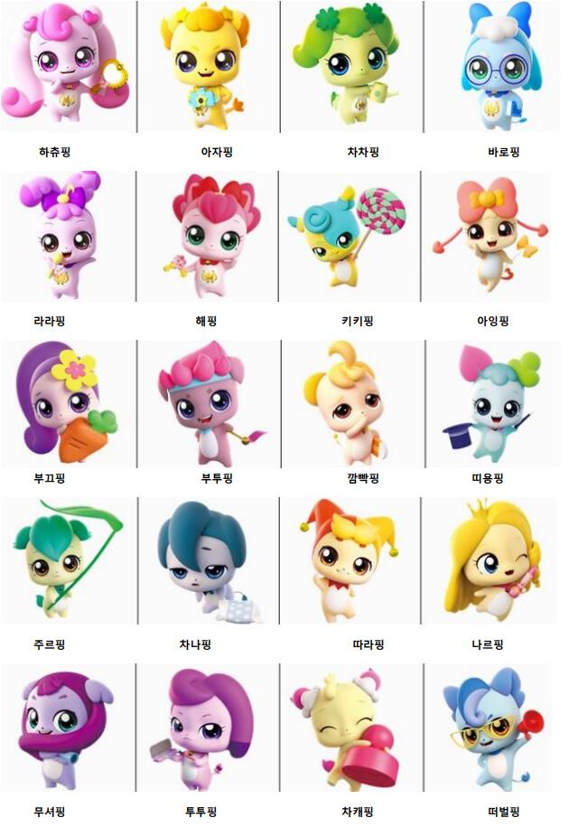 티니핑이 무서운 이유는, 각 캐릭터별 이름+특성 보면 진짜 웃기지도 않을 정도로 막 갖다붙이면서 공장처럼 만들어내죠. 근데 또 그렇게 막 만들어낸 게 나름 귀엽다는게 함정...