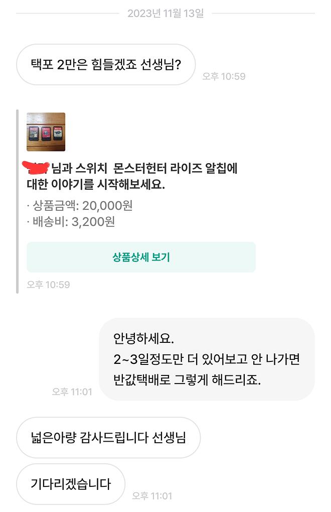 그로부터 이틀 지나도 안 나가서 반값택베로 2만원에 보내드린다고 톡 하니까 대답도 안 하고 잠수...