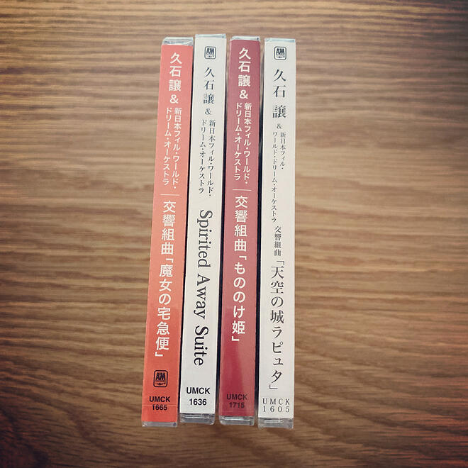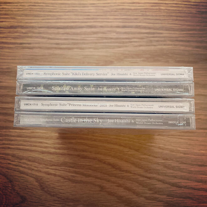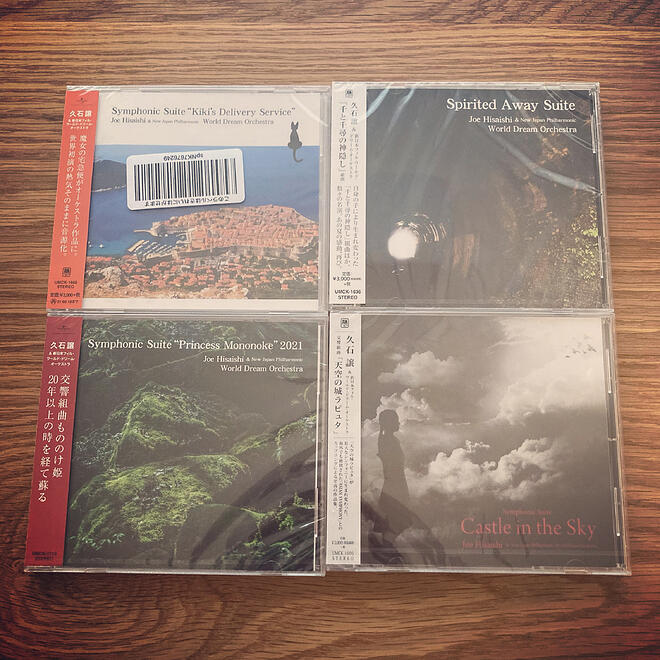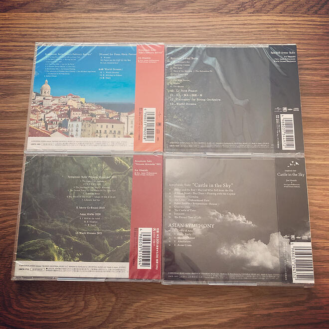 히사이시 조 좋아하시는 분 계실거 같아서 최근 구입한 앨범 몇 장 올려봅니다. Symphonic Suite 시리즈로 천공의 섬 라퓨타, 센과 치히로의 행방불명, 마녀 배달부 키키, 원령공주 순으로 이렇게 4장의 앨범이 출시가 되었습니다.