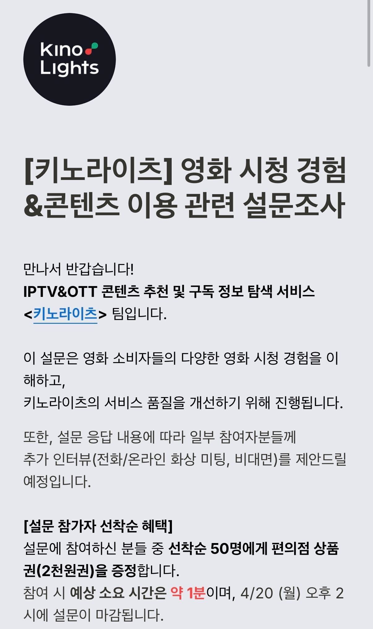 키노라이츠라는 영화관련 플랫폼에서 설문조사하는데