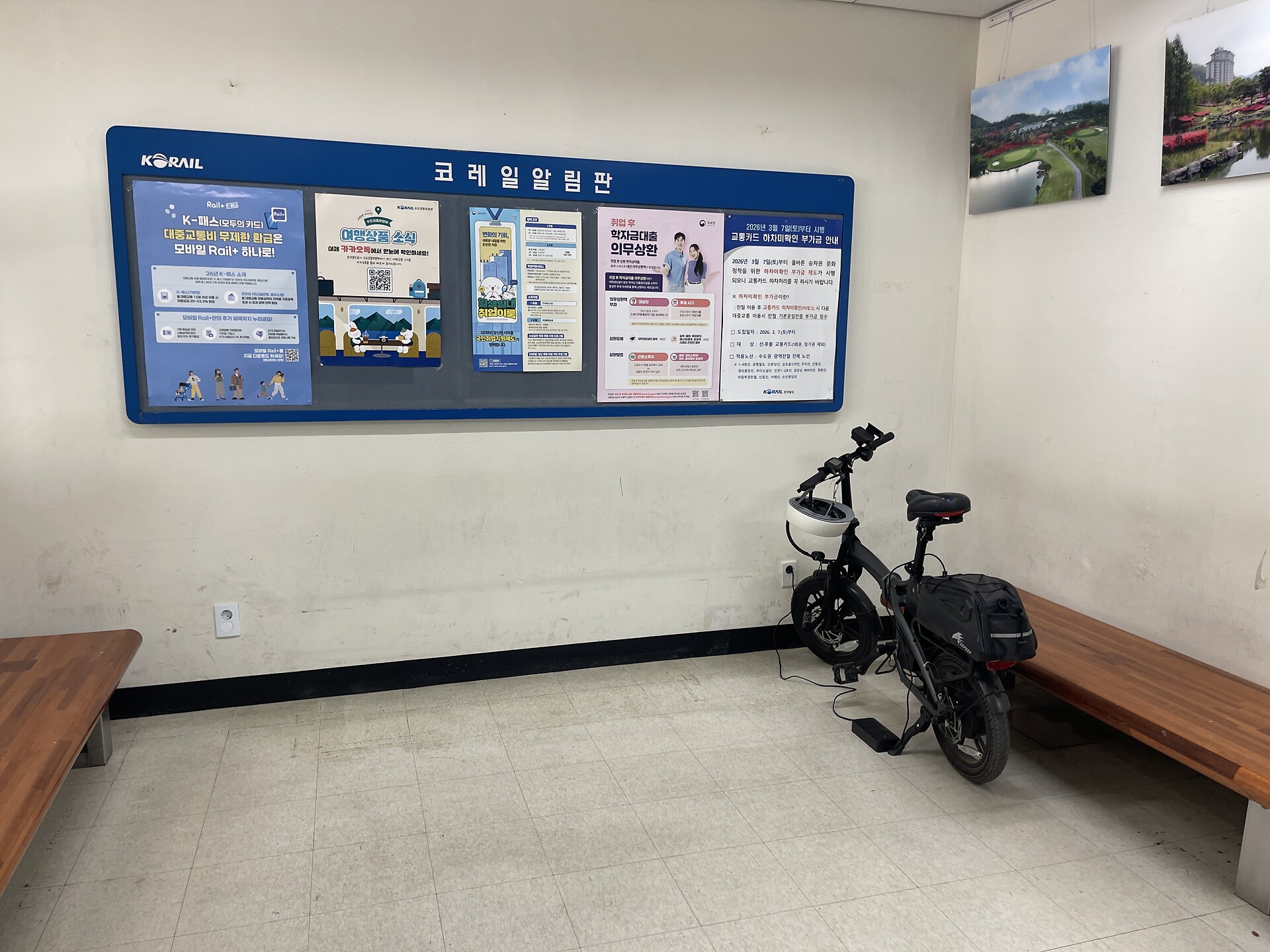 서울로 가는 7:40분 itx청춘열차에 자전거거차대 좌석을 예매해 놓은지라 시간이 별로 없습니다.