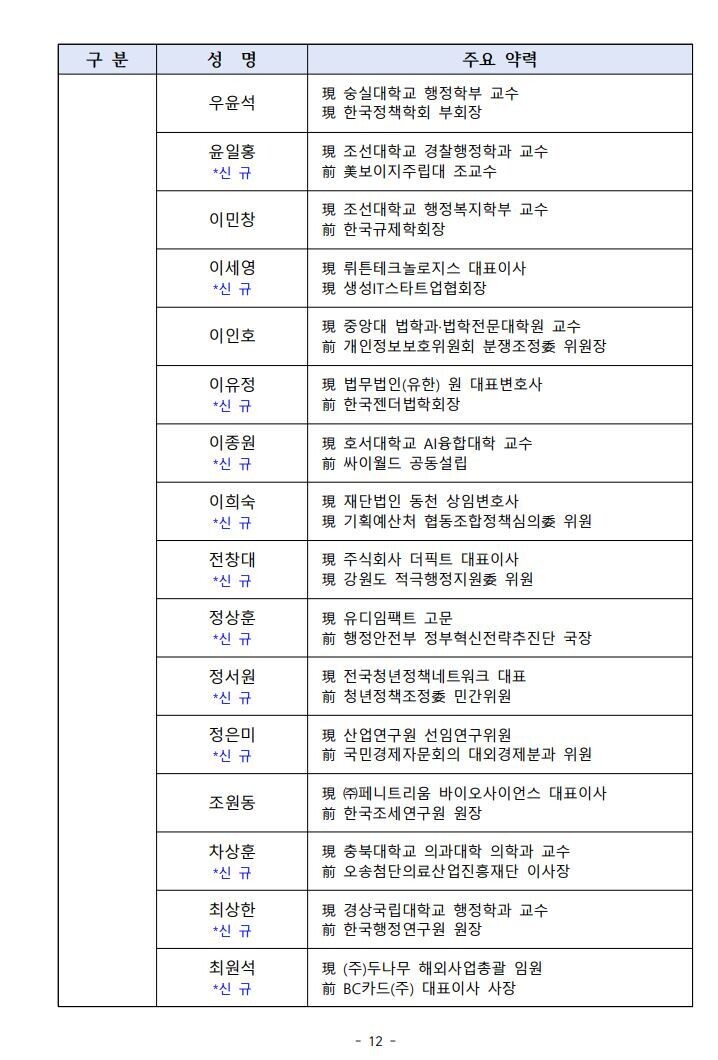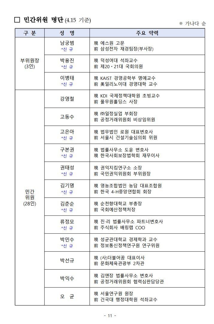 보도자료 말미에 민간위원 명단이 첨부되어 있는데,